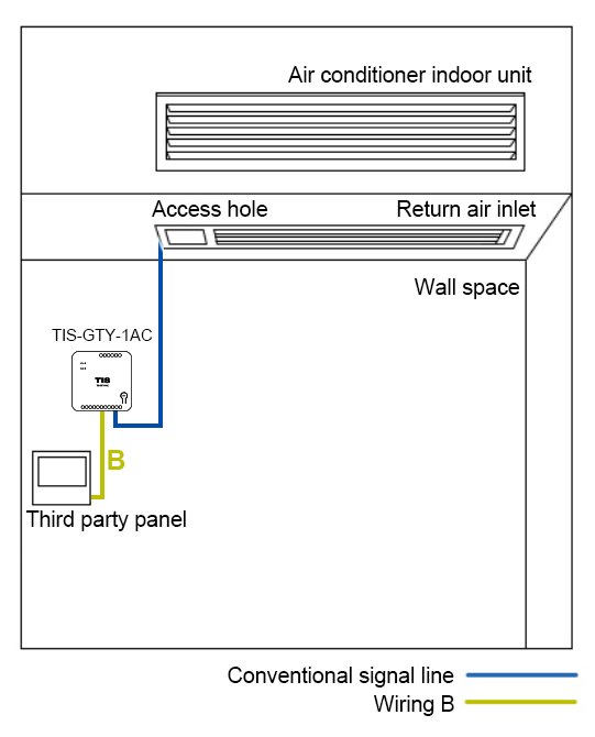TIS-GTY-1AC is installed next to the indoor unit or at the ceiling