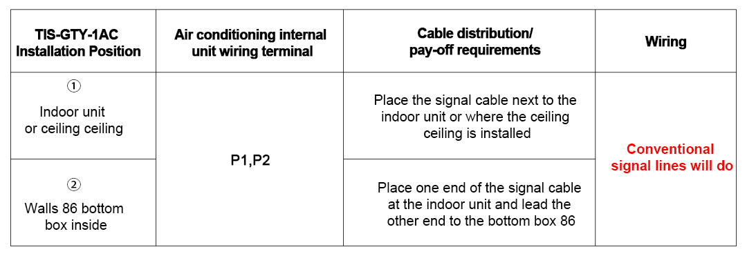 ※The installation position of TIS-GTY-1AC is determined by the actual scene, optional ① or ②