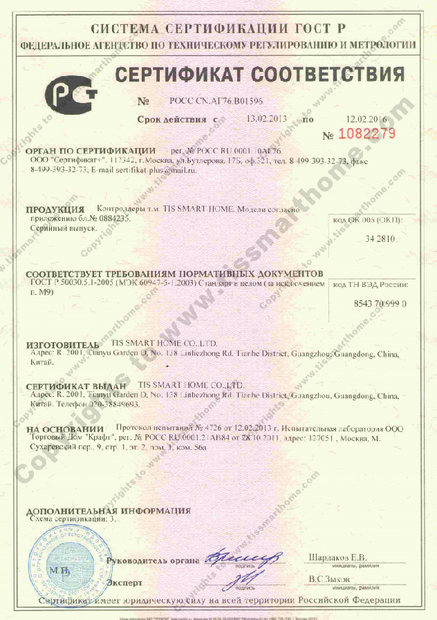 O certificado GOST-R é emitido após avaliação técnica dos produtos da sua empresa para garantir a conformidade com os regulamentos de segurança russos. O Certificado GOST-R é válido por três anos e uma licença para usar a marca GOST-R é válida por um ano e renovada com uma inspeção anual da fábrica.