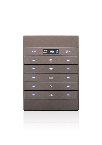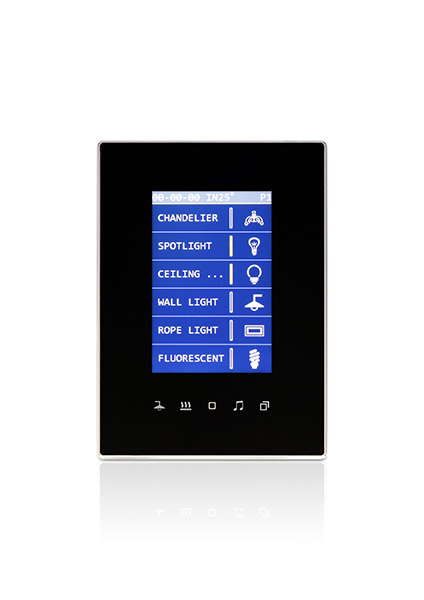 TITANIA & Titania TFT is a 3” touch panel with customizable LED icons designed for limitless control over lights, climate, moods, scenarios, curtains, and more.