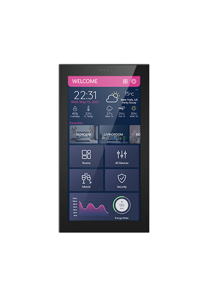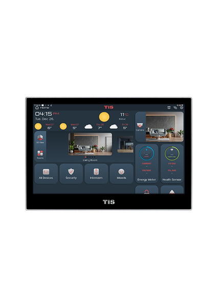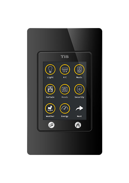 The Luna TFT panel, another stylish design by TIS Smart Some Manufacturers, has a number of features that make it a special, best-in-class solution. There are various design options for this device, which replaces all room lights switches, wall thermostats, audio stream and volume control, curtain switches, security console, and many other features and offers them all in one elegant panel.